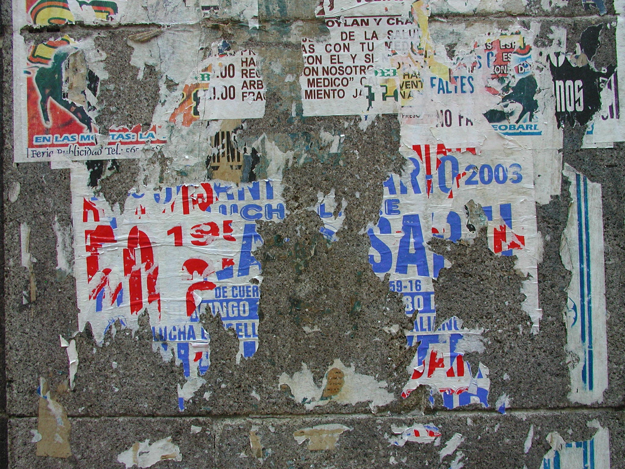 In Mexico there are a lot of posters in our area for La Lucha which are the wrestling matches and La Lucha means wrestle and wrestle mean struggle and these wrestling posters have been a major source material for my work this last couple of years.