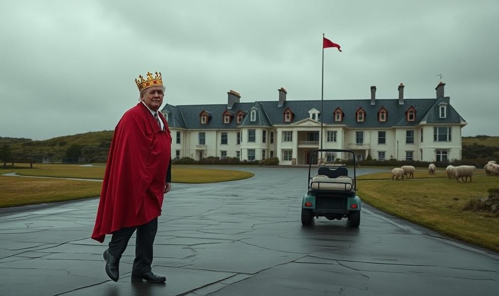 King Donald the First—still insisting on the title, even as the world had already demoted him to footnote—made his way across the Atlantic, bound for a refuge no one else wanted.