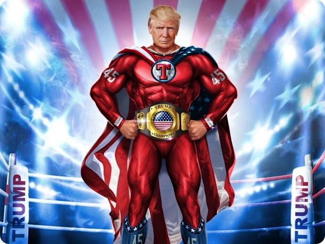 Digital trading cards and NFTs of Trump - the dear leader - as various superheroes.Patriot Echo Networks: