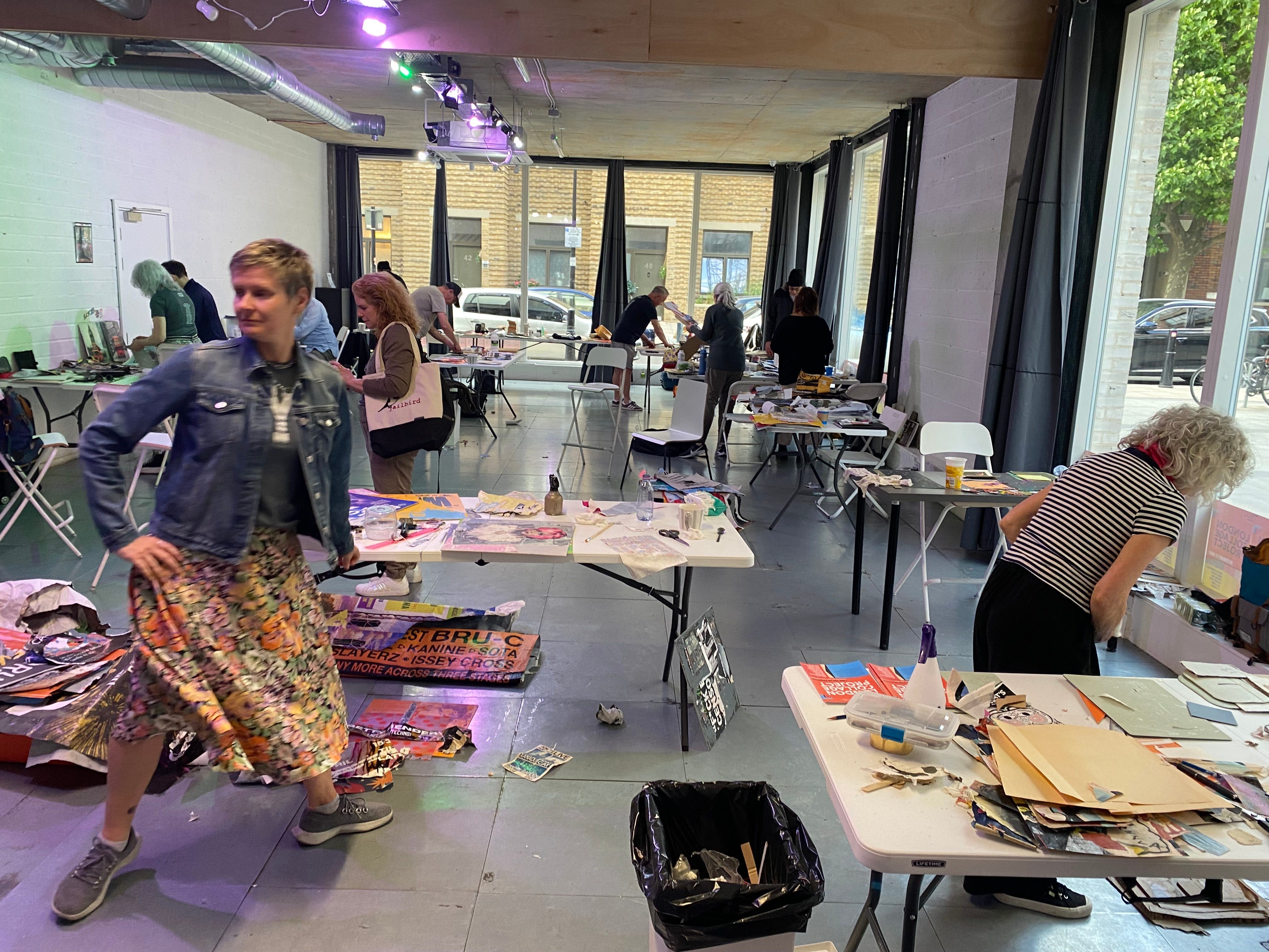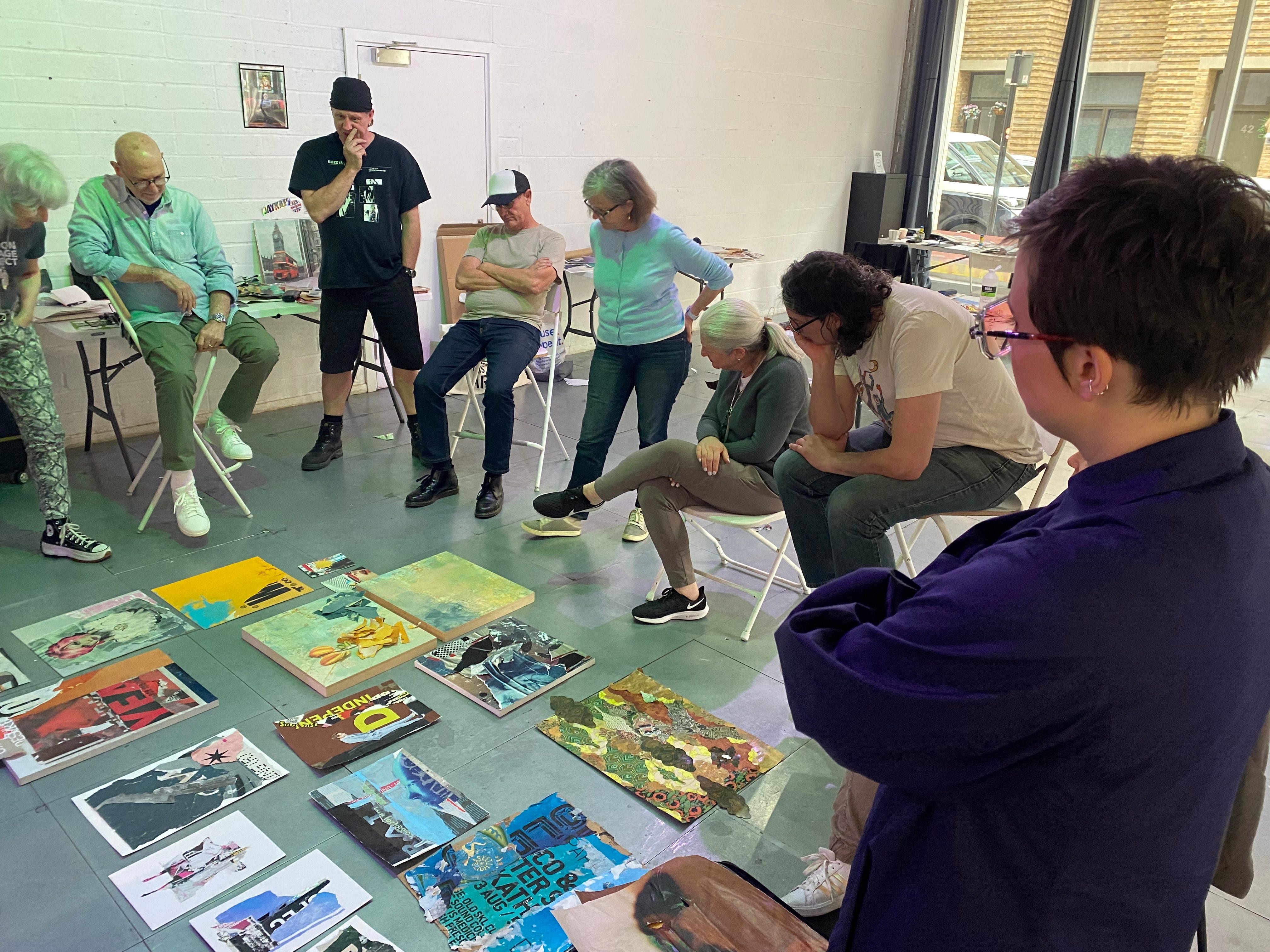 Here is the studio we rented and a review of works in progress from the day. I made 6 collages on paper myself but many were working at a larger scale, some on panels. Later we went out for dinner and beers. A few stayed behind and kept working. I tend to stick with those who want to keep going after dinner and talk so I hung out with Les, Joel and Marlene, Sasha, Silvio and Jeff till about midnight. Now I am about ready for bed.