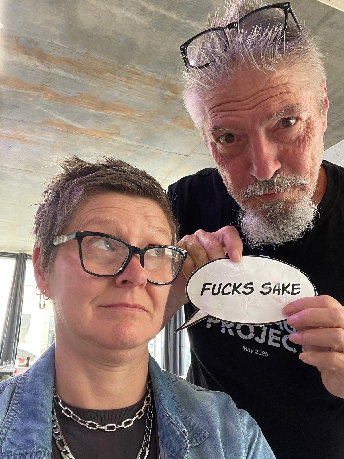 Then Clare was sorting through her posters and came across a funny talk bubble that said Fucks Sake. She thought it was really funny so we played around with it for the following pictures… I think everybody wants to do one and then make a poster out of the pics together.