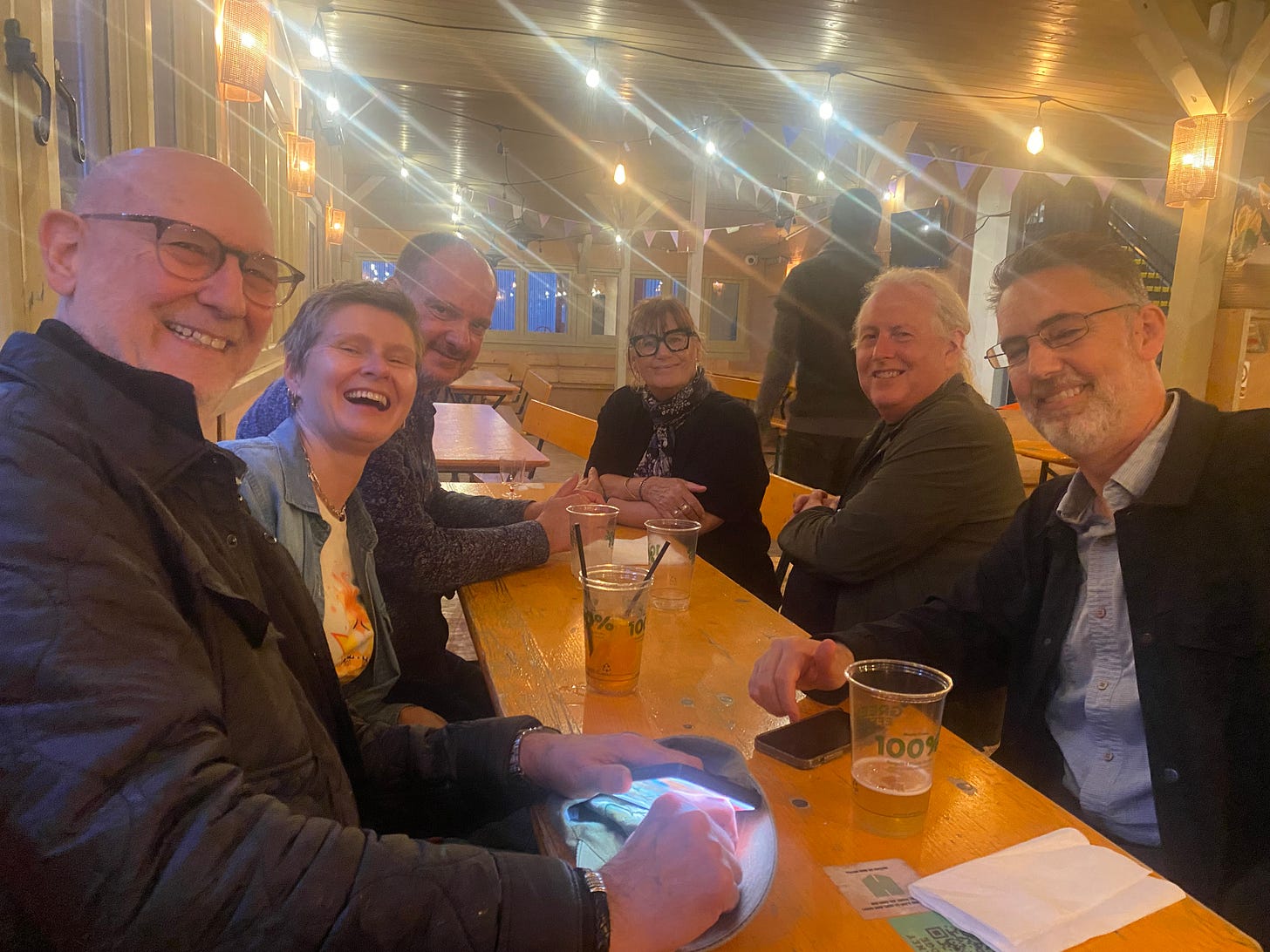 Here we are at three different places over the course of the evening. A lite of the artists joined us for dinner and drinks.