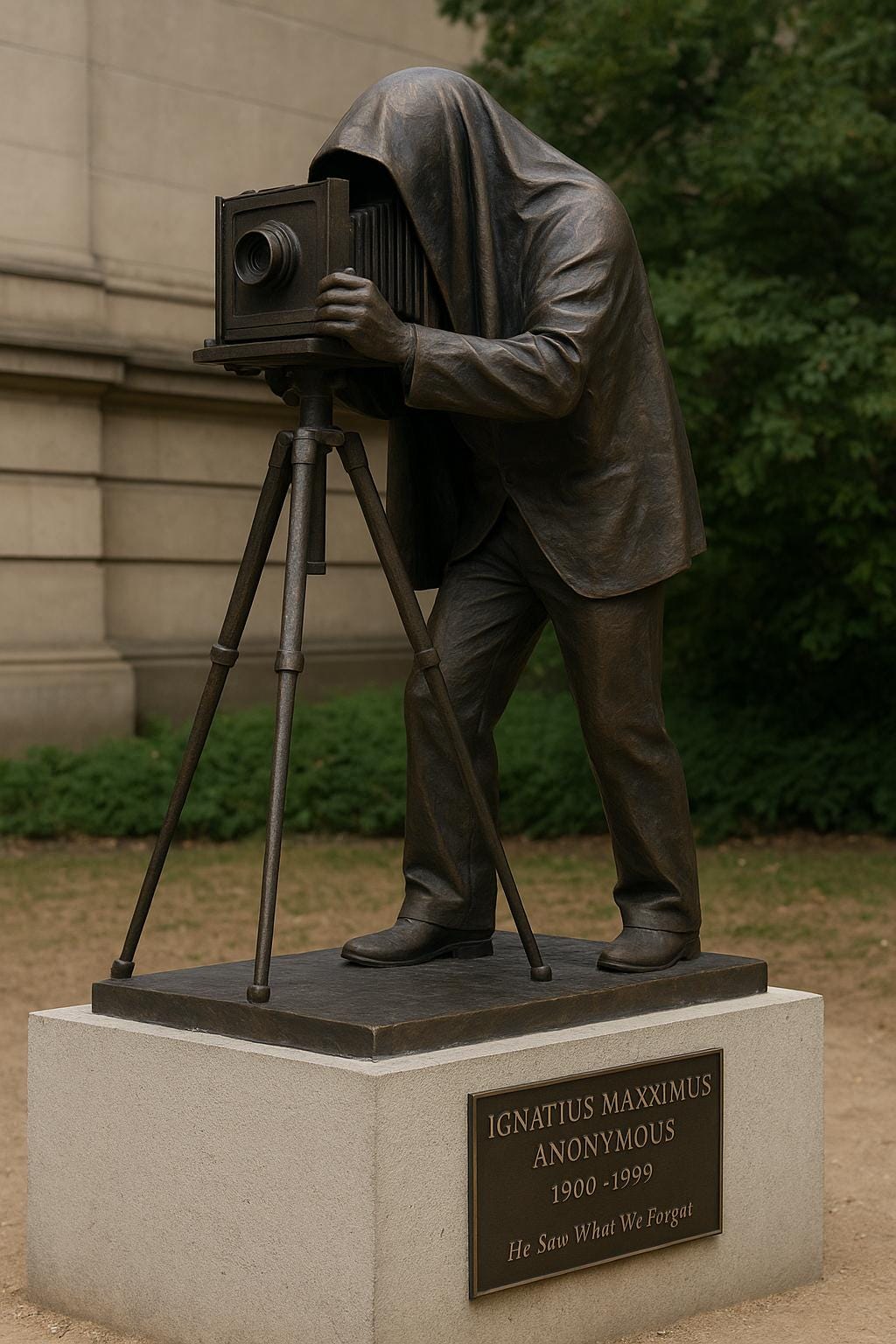 All unattributed photographs—especially those held in the Department of Photographic Records—are formally attributed to Ignatius Maximus Anonymous. His name does not denote authorship in the traditional sense, but rather acknowledges that: