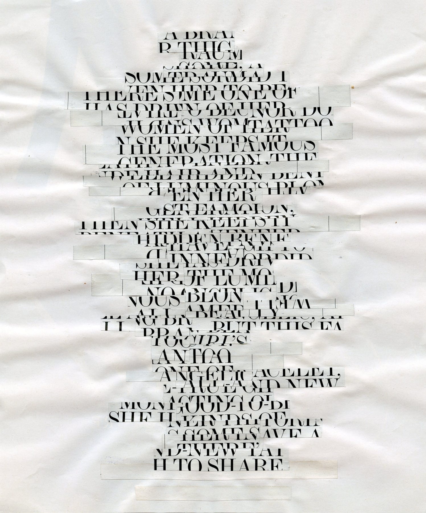 This is when the real arranging begins: selecting, cutting, recombining, setting one line against another until sparks appear. The poem doesn’t start with a blank page but with an already-crowded page, a cacophony that slowly resolves into music. Toward the end of the process, I look for a rhythm of beginning, middle, and end. Something with the faint skeleton of narrative, even if abstract.