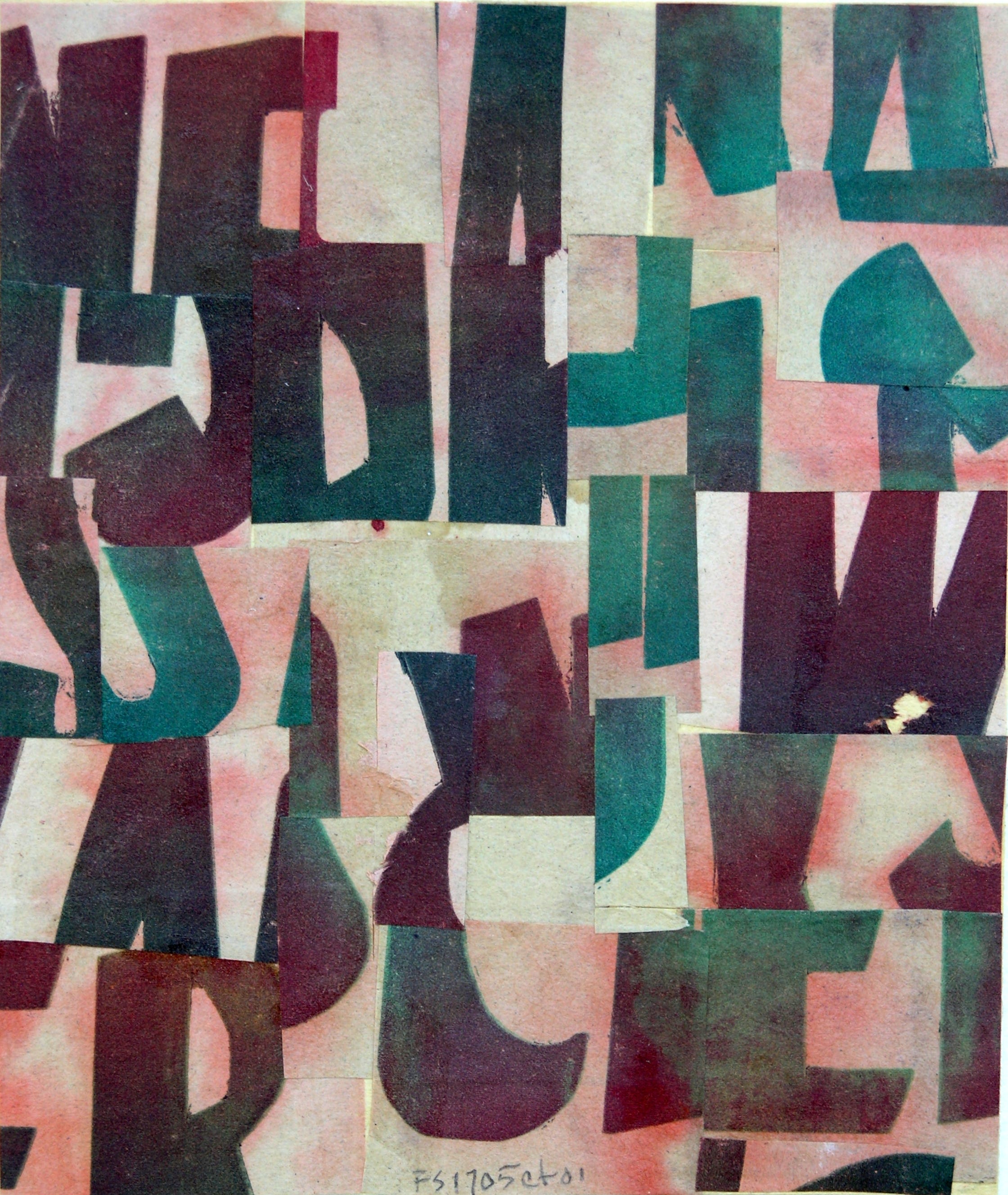 First of all Cecil, I love the colours in your collage at the top of this piece and I particularly like that tiny little drop of red somewhere in the upper middle that just sits there quietly bleeding into the sliver of cream between two forms and yet it makes the beautiful petrol green above it really pop. Gorgeous!